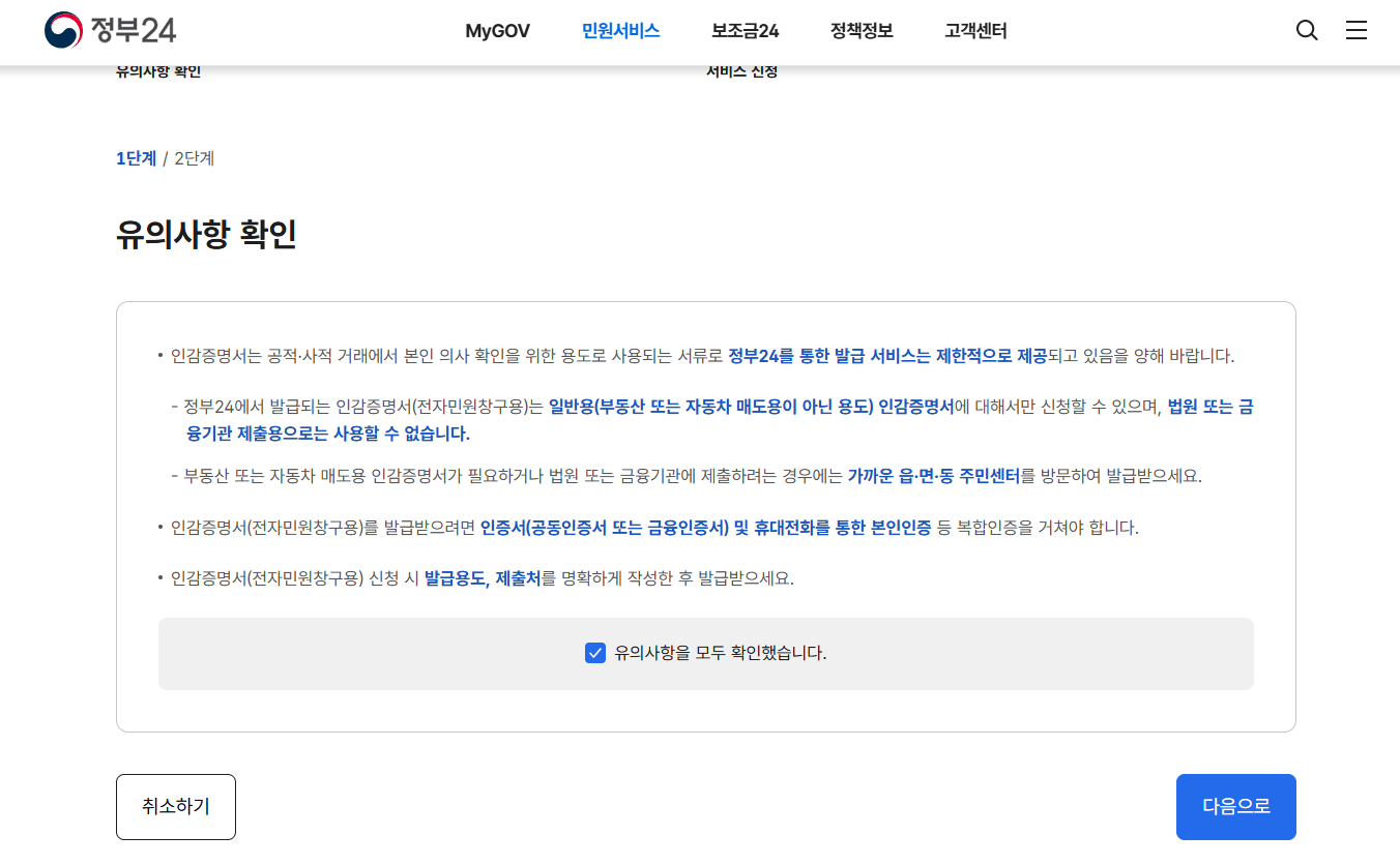 온라인으로 인감증명서를 발급받을 때는 몇 가지 주의사항이 있습니다.